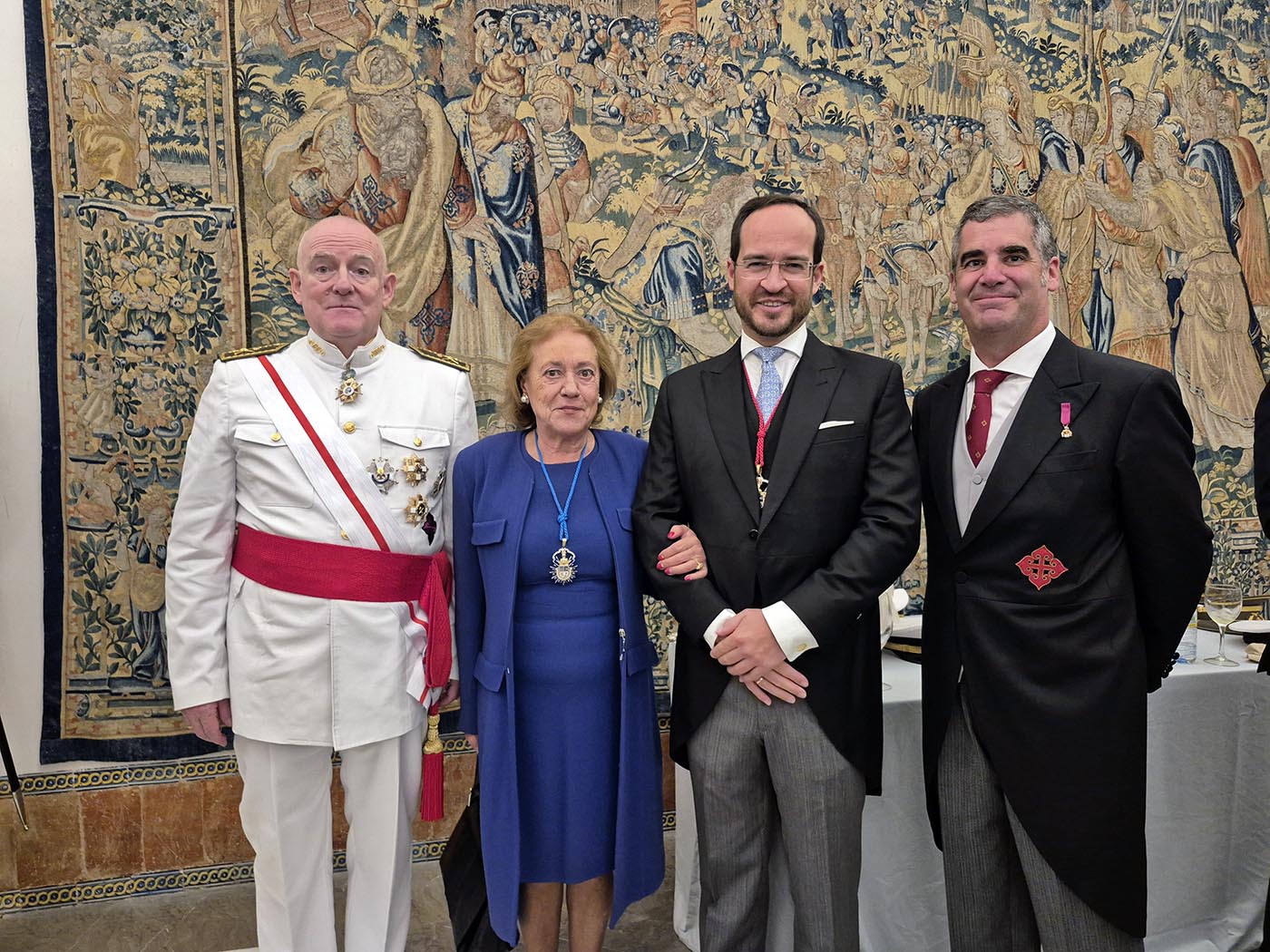 De izquierda a derecha: El general don Fernando García-Mercadal y García-Loygorri, diputado de la junta de gobierno del Solar de Tejada; doña Mariángel Quesada y Zea, procuradora fiscal, don Fernando de Herrera y Hume, alcalde mayor, y el caballero divisero don Jaime Travesedo y Juliá, conde de Paredes de Nava, grande de España, y conde de Consuegra.
